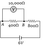 Hence, potential difference measured by voltmeter ${V_f} = \frac{{384.6}}{{(384.6 + 800)}} \times 6 = 1.95\,V$