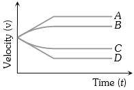 A small spherical solid ball is dropped from a great height in a viscous liquid. Its journey in the liquid is best described in the diagram given below by the