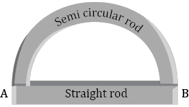 Two rods (one semi-circular and other straight) of same material and of same cross-sectional area are joined as shown in the figure. The points $A$ and $B$ are maintained at different temperature. The ratio of the heat transferred through a cross-section of a semi-circular rod to the heat transferred through a cross section of the straight rod in a given time is