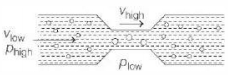 As, $p+\frac{1}{2} \rho v^2=$ constant for a horizontal tube.