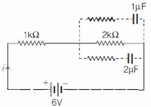 Now, potential drop across $1 \mu F$ and $2 \,\mu F$ capacitors = potential drop across $2 \,k \Omega$ resistance