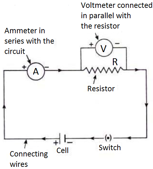 What is a circuit diagram? Draw the labelled diagram of an electric circuit comprising of a cell, a resistor, an ammeter, a voltmeter and a closed switch (or closed plug key). Which of the two has a large resistance: an ammeter or a voltmeter?
