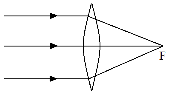 The lens shown in convex. the parallel rays will converge to a point called focus (F).