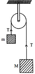 Two blocks of masses $m$ and $M$ are connected by means of a metal wire of cross-sectional area $A$ passing over a frictionless fixed pulley as shown in the figure. The system is then released. If $M = 2\, m$, then the stress produced in the wire is