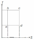 An ideal gas is taken reversibly around the cycle $a-b-c-d-a$ as shown on the temperature $T$ - entropy $S$ diagram. The most appropriate representation of above cycle on a internal energy $U$ - volume $V$ diagram is