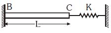 A rod $BC$ of negligible mass fixed at end $B$ and connected to a spring at its natural length having spring constant $K = 10^4\ N/m$ at end $C$, as shown in figure. For the rod $BC$ length $L = 4\ m$, area of cross-section $A = 4 × 10^{-4}\ m^2$, Young's modulus $Y = 10^{11} \ N/m^2$ and coefficient of linear expansion $\alpha = 2.2 × 10^{-4} K^{-1}.$ If the rod $BC$ is cooled from temperature $100^oC$ to $0^oC,$ then find the decrease in length of rod in centimeter.(closest to the integer)