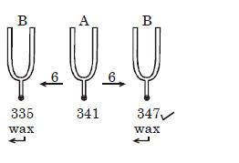 When a tuning fork of frequency $341$ is sounded with another tuning fork, six beats per second are heard. When the second tuning fork is loaded with wax and sounded with the first tuning fork, the number of beats is two per second. The natural frequency of the second tuning fork is