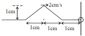 A trianguler pulse moving at $2\ cm/s$ on a rope approches an end at which it is free to slide on vertical pole. What is the particle speed at the free end at $\frac{3}{4}\ sec$ from the instant shown ...... $cm/s$