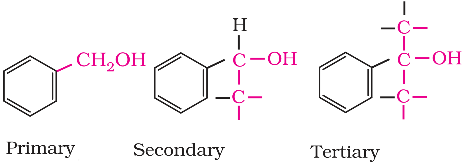 Benzylic alcohols: In these alcohols, the $-OH$ group is attached to a $sp^3 -$ hybridised carbon atom next to an aromatic ring. For example,