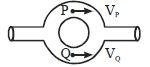In the figure shown, a liquid is flowing through a tube at the rate of $0.1\, m^3/sec$. The tube is branched into two semicircular tubes of cross-sectional area $A/3$ and $2A/3$. The velocity of liquid at $Q$ is ......... $ m/sec$ (The cross-section of the main tube $= A =10^{-2}\, m^2$ and $v_p = 20\, m/sec$)