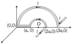 The figure shows the cross section of a long cylindrical conductor through which an axial hole of radius $r$ is drilled with its centre at point $A$ . $O$ is the centre of the conductor. If an identical hole were to be drilled centred at point $B$ while maintaining the same current density the magnitude of magnetic field at $O$