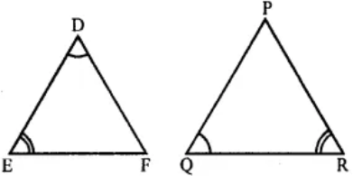 $\triangle$DEF और $\triangle$PQR, में $\angle \mathrm{D}=\angle \mathrm{Q}$ और $\angle \mathrm{R}=\angle \mathrm{E}$ तो $\frac{\mathrm{DE}}{\mathrm{PQ}}=\frac{\mathrm{EF}}{\mathrm{RP}}$ यह सच नहीं है। ($\because$ संगत पक्ष नहीं हैं)