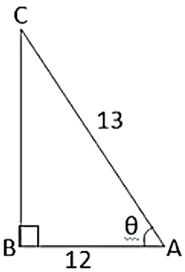 $\theta$ की संलग्न भुजा $=12,$ समकोण की सम्मुख भुजा $($कर्ण$) =13$