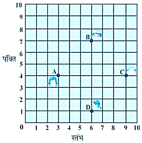 किसी कक्षा में, चार मित्र बिंदुओं A, B, C और D पर बैठे हुए हैं, जैसाकि आकृति में दर्शाया गया है। चंपा और चमेली कक्षा के अंदर आती हैं और कुछ मिनट तक देखने के बाद, चंपा चमेली से पूछती है, 'क्या तुम नहीं सोचती हो कि ABCD एक वर्ग है? चमेली इससे सहमत नहीं है। दूरी सूत्र का प्रयोग करके, बताइए कि इनमें कौन सही है।