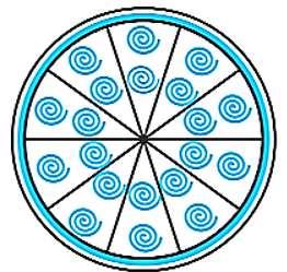 एक वृत्ताकार ब्रूच $($brooch$)$ को चाँदी के तार से बनाया जाना है जिसका व्यास $35\ mm$ है। तार को वृत के $5$ व्यासों को बनाने में भी प्रयुक्त किया गया है जो उसे $10$ बराबर त्रिज्यखंडों में विभाजित करता है जैसा कि आकृति में दर्शाया गया है। तो ज्ञात कीजिए: