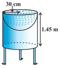 मयंक ने अपने बगीचे के लिए एक पक्षी$-$स्नानागार $($bird$-$bath$)$ बनाया जिसका आकार एक खोखले बेलन जैसा है जिसके एक सिरे पर अर्धगोलाकार बर्तन बना हुआ है $($देखिए आकृति$)$। बेलन की ऊँचाई $1.45 m$ है और उसकी त्रिज्या $30 \ cm$ है। इस पक्षी$-$स्नानागार का संपूर्ण पृष्ठीय क्षेत्रफल ज्ञात कीजिए।