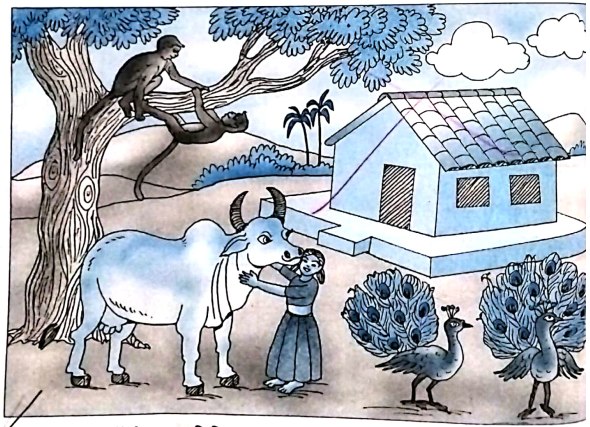 $(९)$ गाय के पास कौन है?