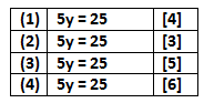| $y$ | $1$ | $2$ | $3$ | $4$ | $5$ | $6$ |